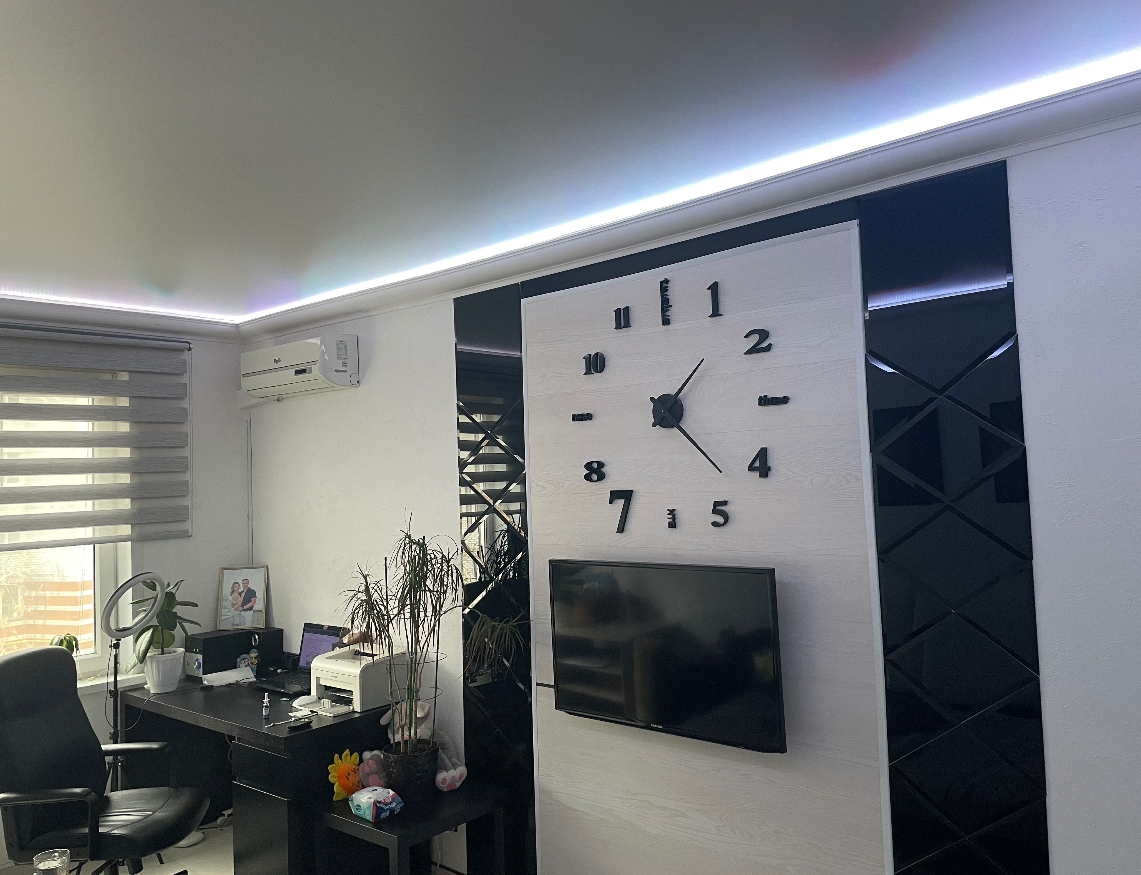 Светодиодная лента создаёт рассеянный свет без резких теней и бликов. Это делает помещение более уютным и визуально комфортным.